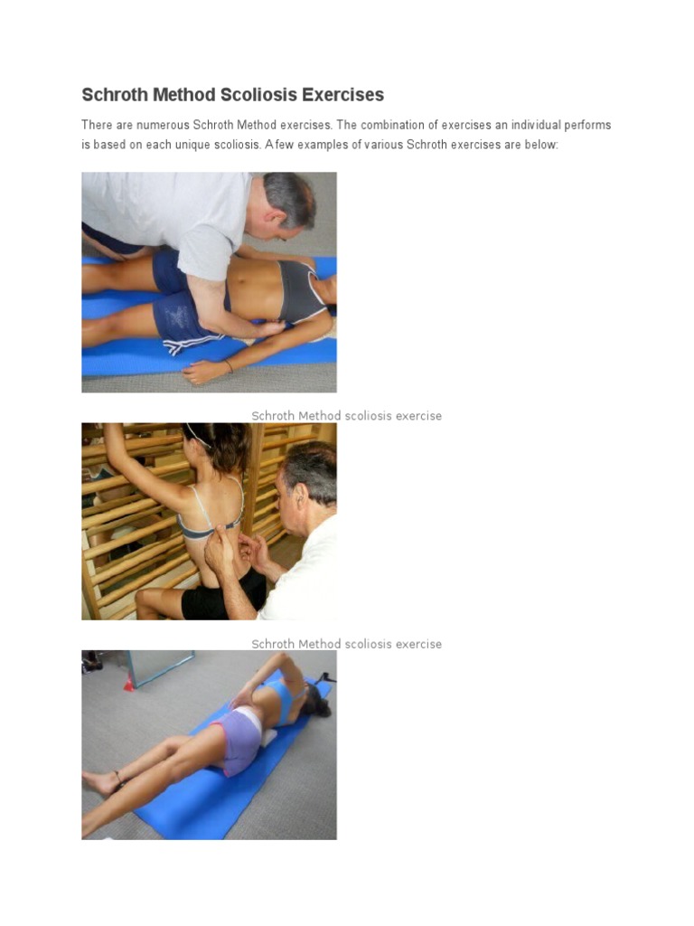 My passion for conservative scoliosis treatment began when I diagnosed my own daughter with adolescent idiopathic scoliosis in January 2001. The Schroth Method is a comprehensive nonsurgical approach to scoliosis management which includes scoliosis-specific exercises. The Schroth Method for scoliosis is a physical therapy approach aimed to help correct and prevent the progression of the spinal curve through a series of 3D postural corrections aimed.